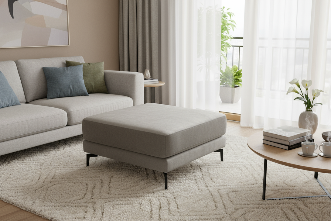 Our Aren ottoman is the perfect addition to your home. Its sleek modern design is complemented by its ultra thick cushion which provides a comfortable yet supportive experience, perfect for a relaxing evening with your feet up catching your favorite show.