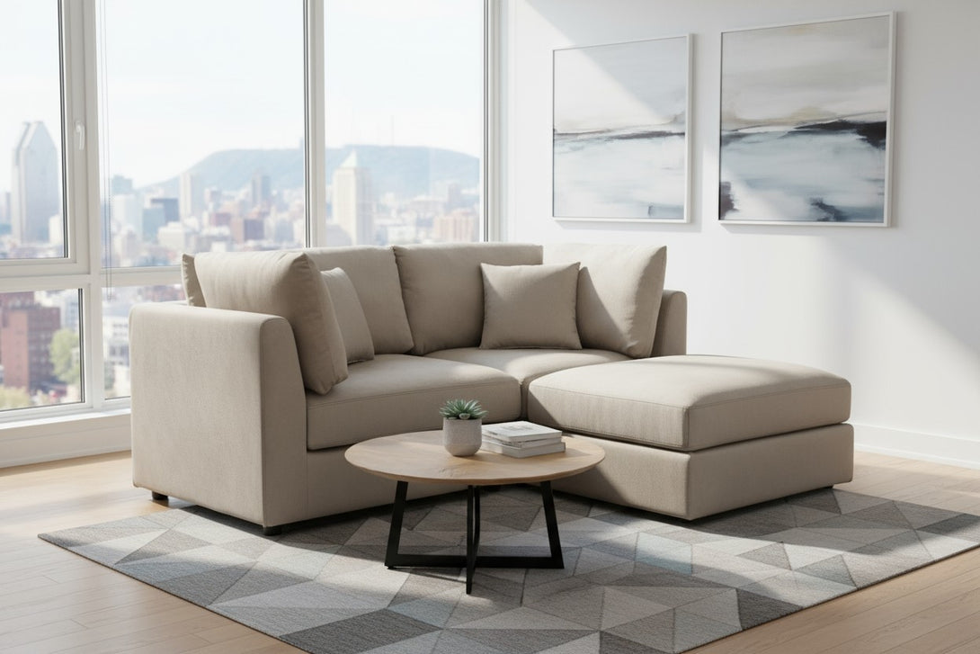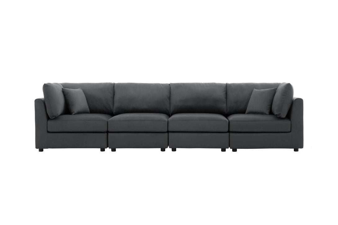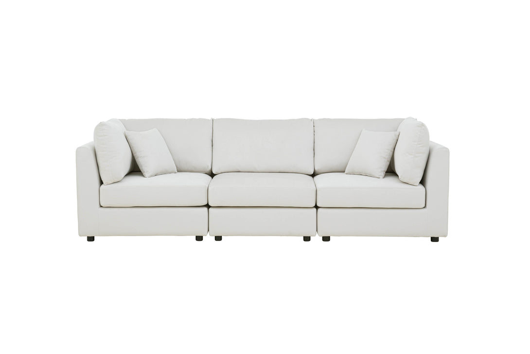 Welcome to your Oasis. The ultimate in customizable comfort and style. Tailor your perfect seating arrangement with ease, thanks to our intuitive underside connecting brackets that securely link as many pieces as you desire. Each component features removable, scratch and stain-resistant covers, ensuring effortless maintenance and the flexibility to refresh your decor with ease.