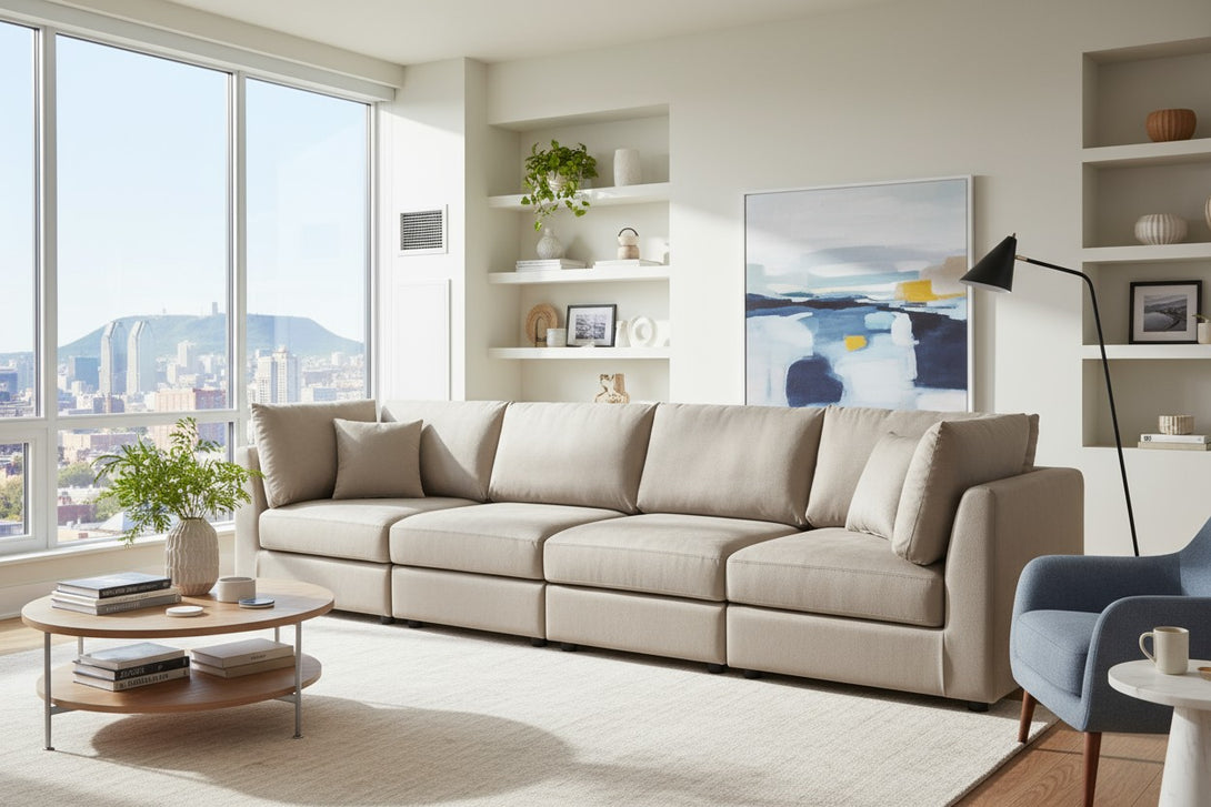 We absolutely love our new couch! The material is incredibly soft and inviting, making it the perfect spot to relax after a long day. The sturdy structure gives us confidence that this couch will last for years to come. One of our favorite features is the modular design – it offers so many layout options, allowing us to customize the arrangement to suit our space perfectly.